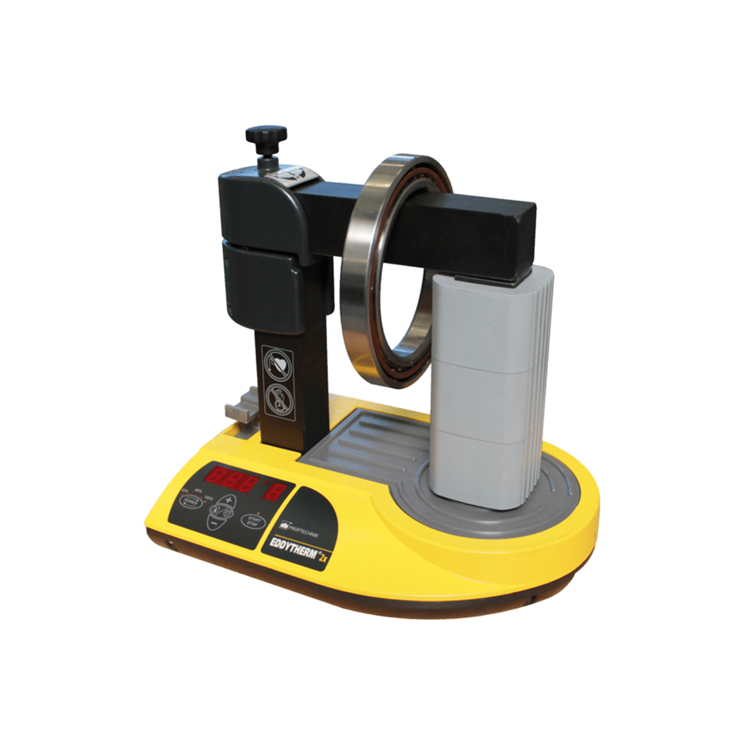 The EDDYTHERM 2x induction heater is suitable for heating small and medium-sized bearings and other metallic, ring-shaped workpieces up to 80 kg. It uses the same induction principle as in transformers – its core and windings are used as the primary side, but the workpiece acts as a short-circuited secondary winding, which rapidly heats up due to its great electrical resistance.