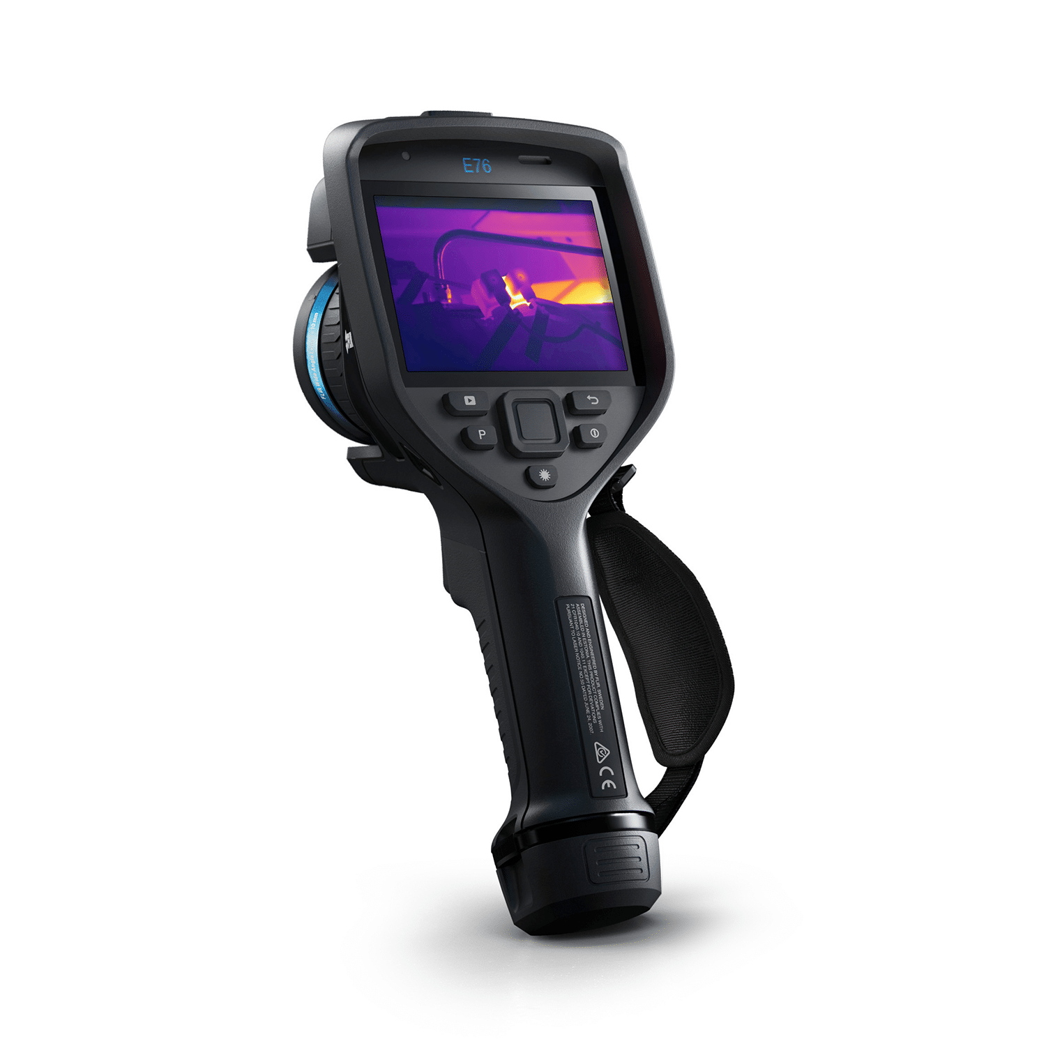 A step up from the FLIR E54, the E76 includes an optional temperature range to 1000°C (1832°F), laser-assisted autofocus, and 3 area measurement boxes. The 320 × 240 thermal resolution produces crisp, vibrant imagery that can be enhanced with patented FLIR MSX® technology for added detail and perspective.